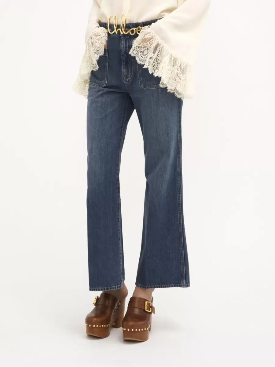 Jeans cropped bootcut in denim sbiadito di cotone biologico senza acqua con tasche applicate sul davanti.