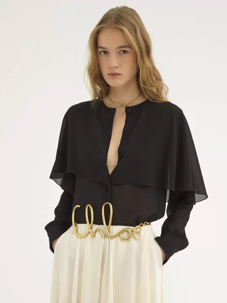 Camicia a mantella in georgette di seta biologica con scollo rotondo e polsini con bottoni.