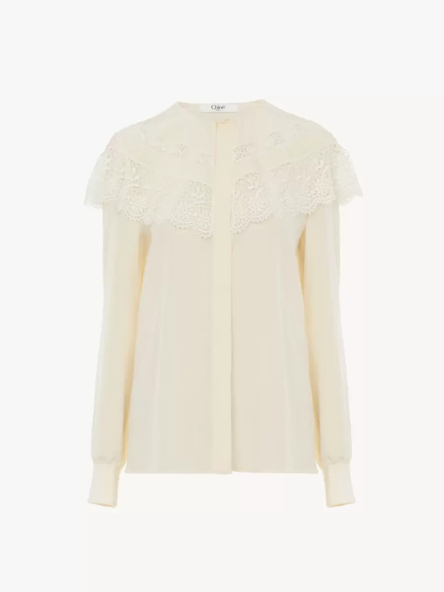 – Camicetta in seta con bordo in pizzo