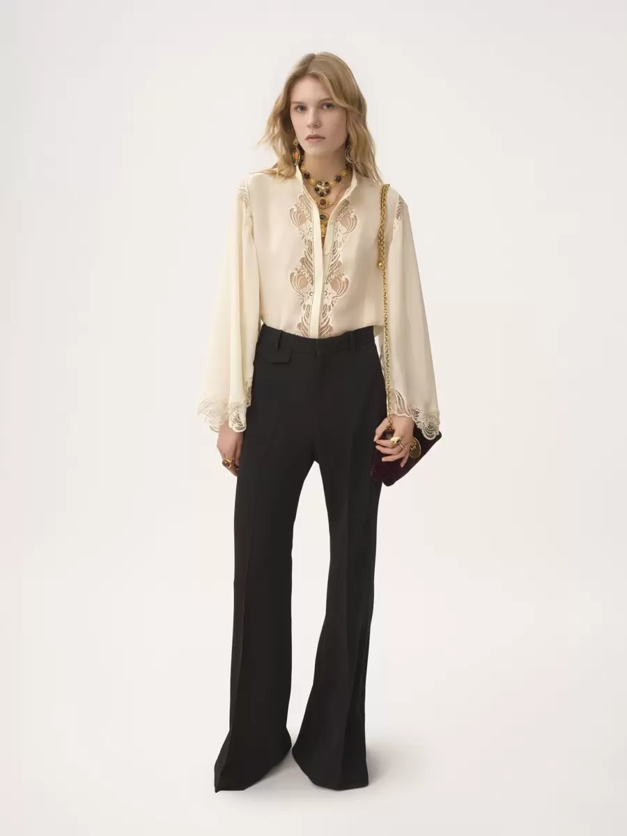 – Camicetta in seta con finiture in pizzo