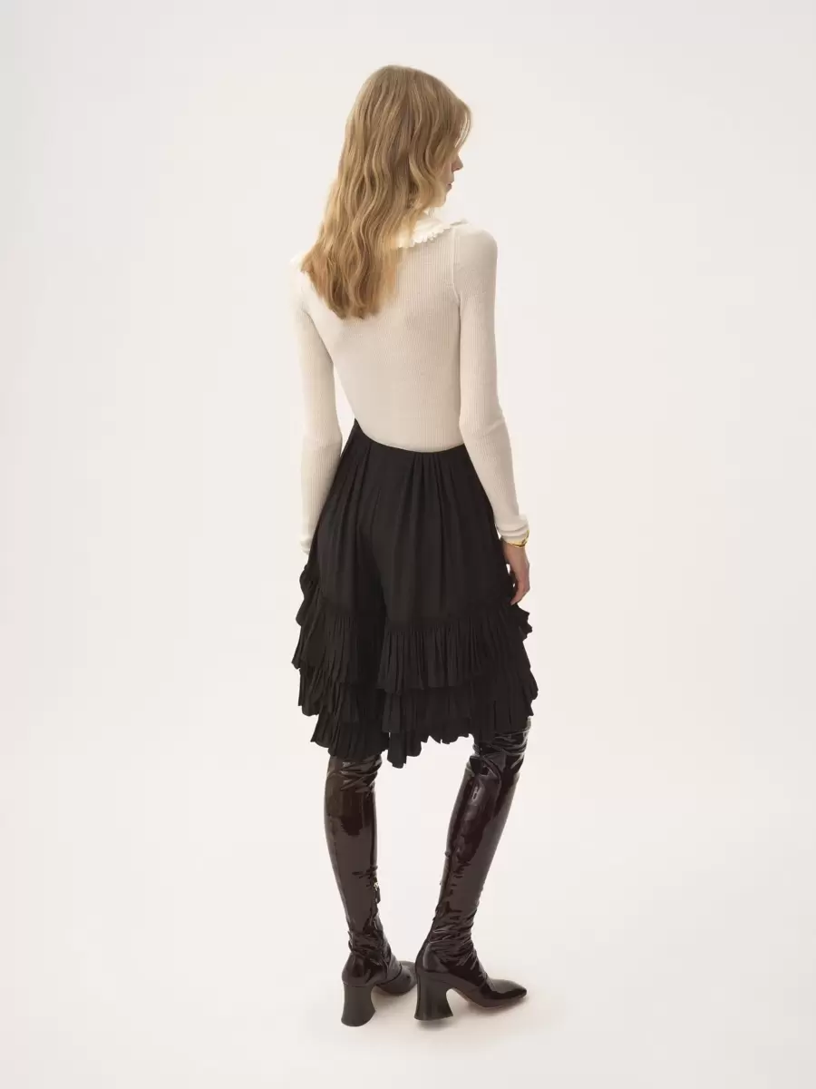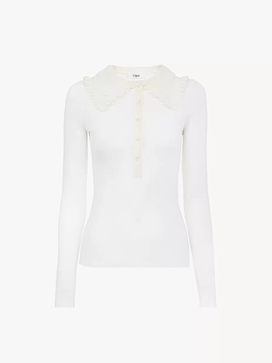 Camicia Henley aderente in maglia di lana superfine a coste, con colletto rifinito in pizzo e abbottonatura in madreperla.