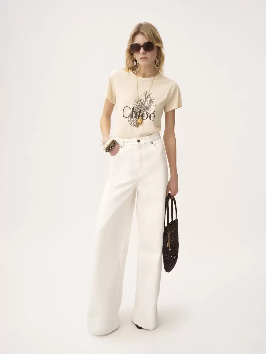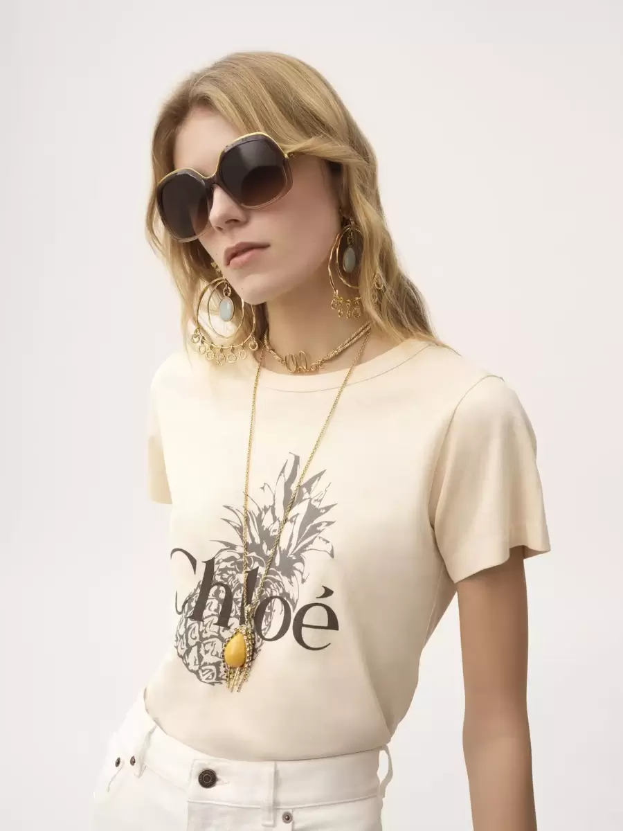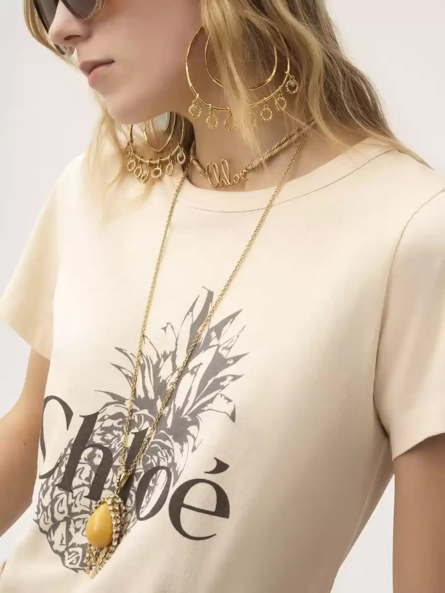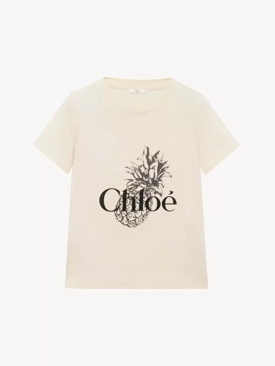 T-shirt girocollo da neonato in jersey di cotone biologico, con logo Chloé a contrasto e stampa di ananas.