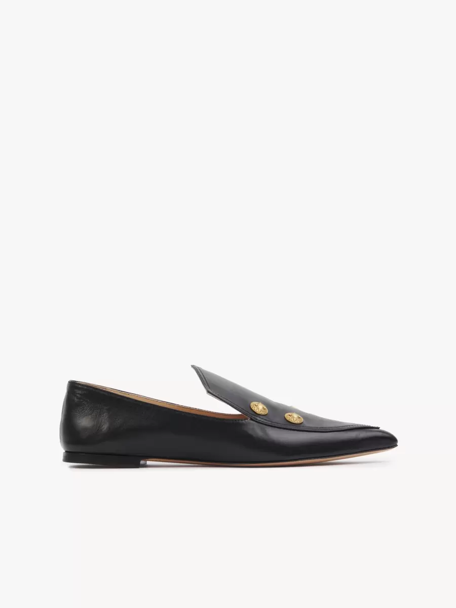 Realizzati in morbida pelle di agnello, questi mocassini Agnes presentano una tomaia a punta impreziosita da bottoni dorati ispirati alla tradizione della Maison.