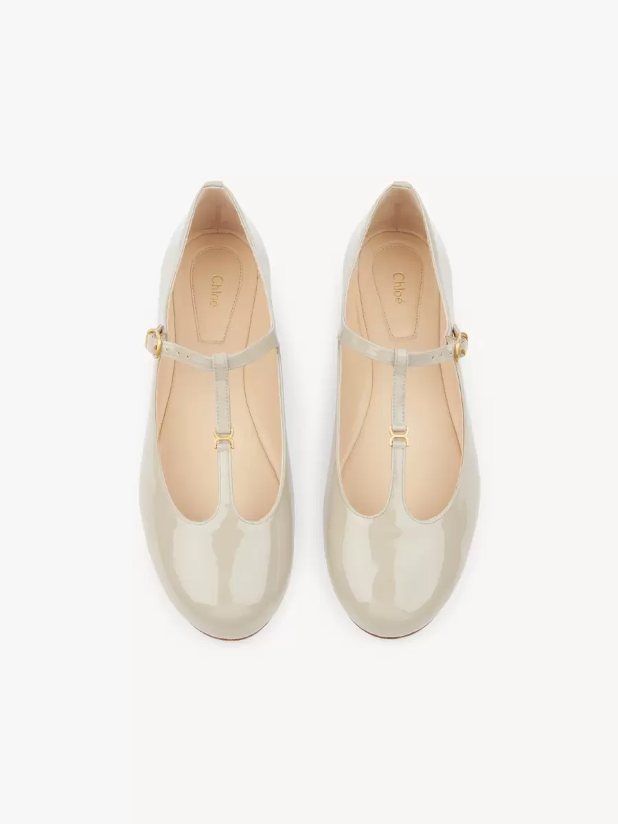 La tomaia è impreziosita dagli elementi metallici dorati di Marcie in miniatura, mentre la fibbia incisa Chloé conferisce una finitura distintiva a queste comode ballerine.