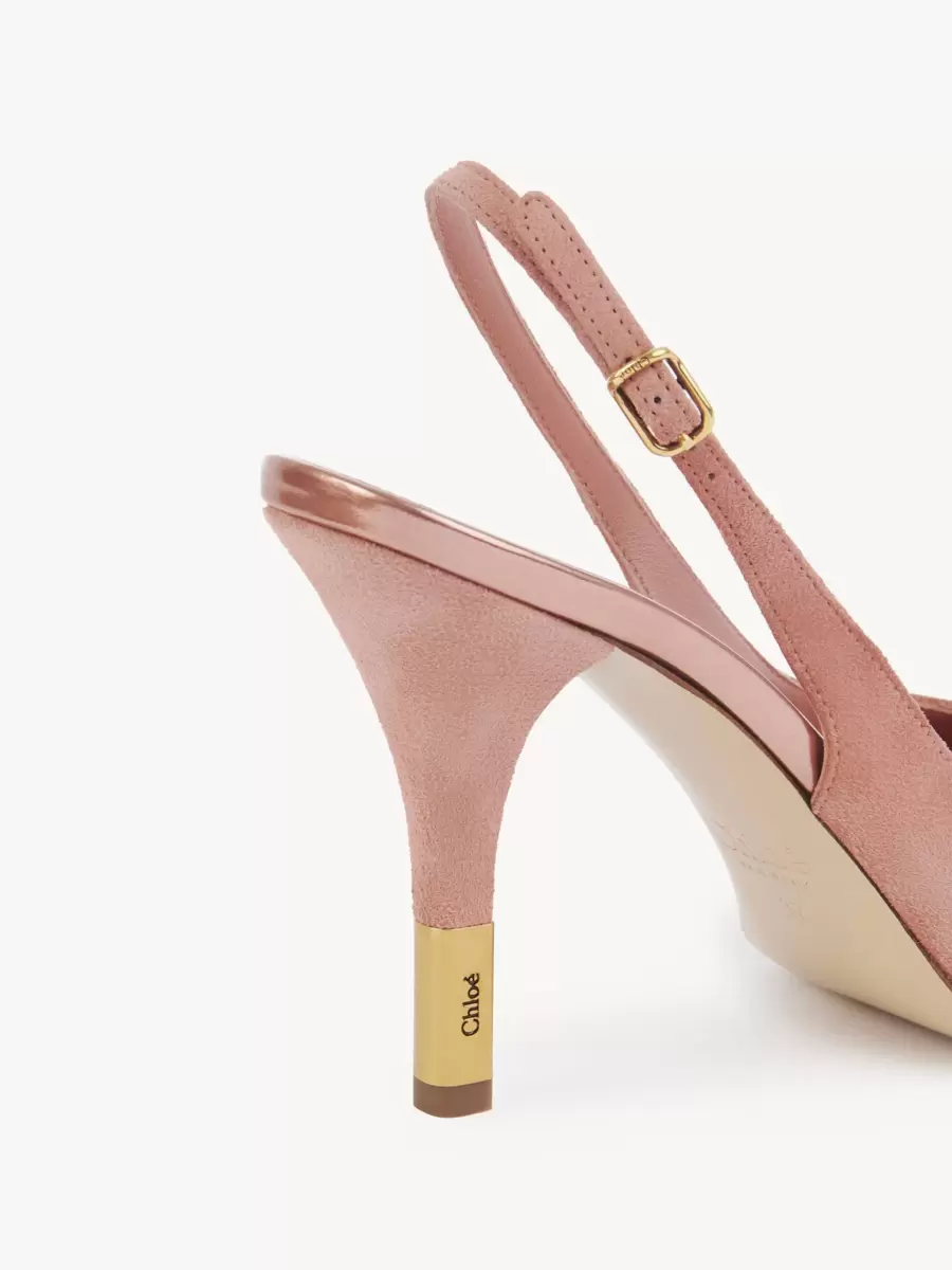 Questo sandalo regolabile con cinturino posteriore è rifinito con un inserto sul tallone e una fibbia dorati, entrambi incisi con il logo Chloé.