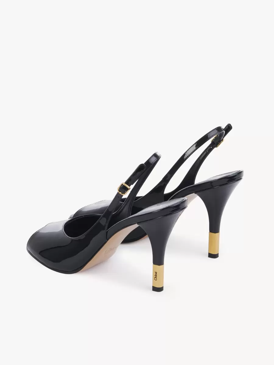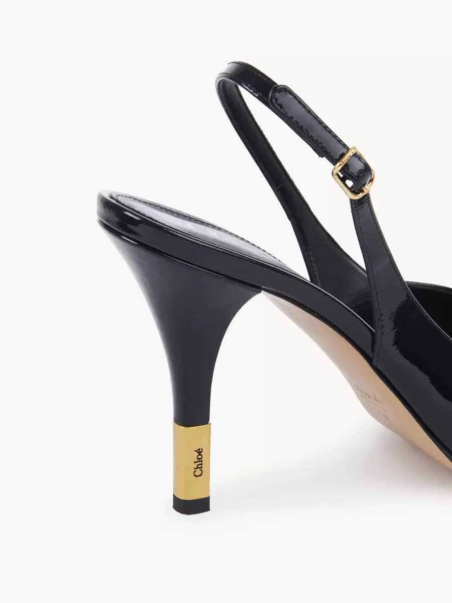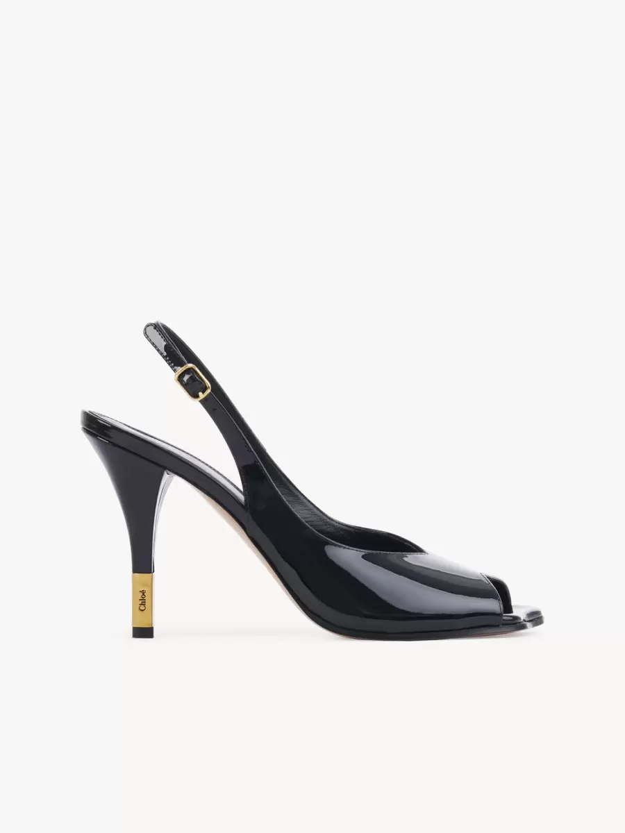 Questo sandalo regolabile con cinturino posteriore è rifinito con un inserto sul tallone e una fibbia dorati, entrambi incisi con il logo Chloé.