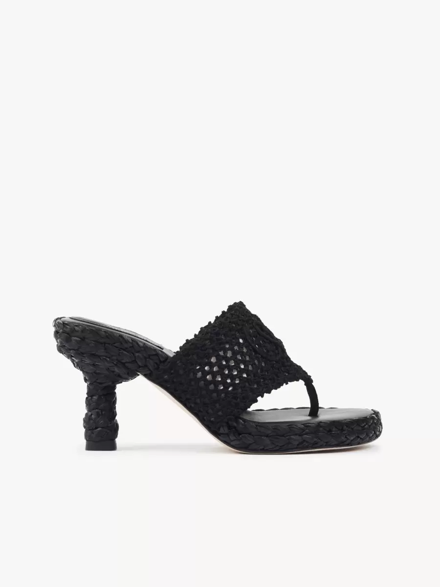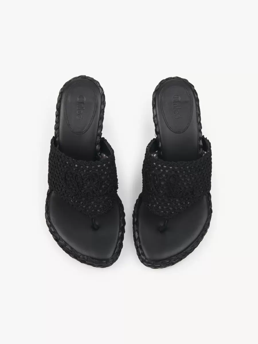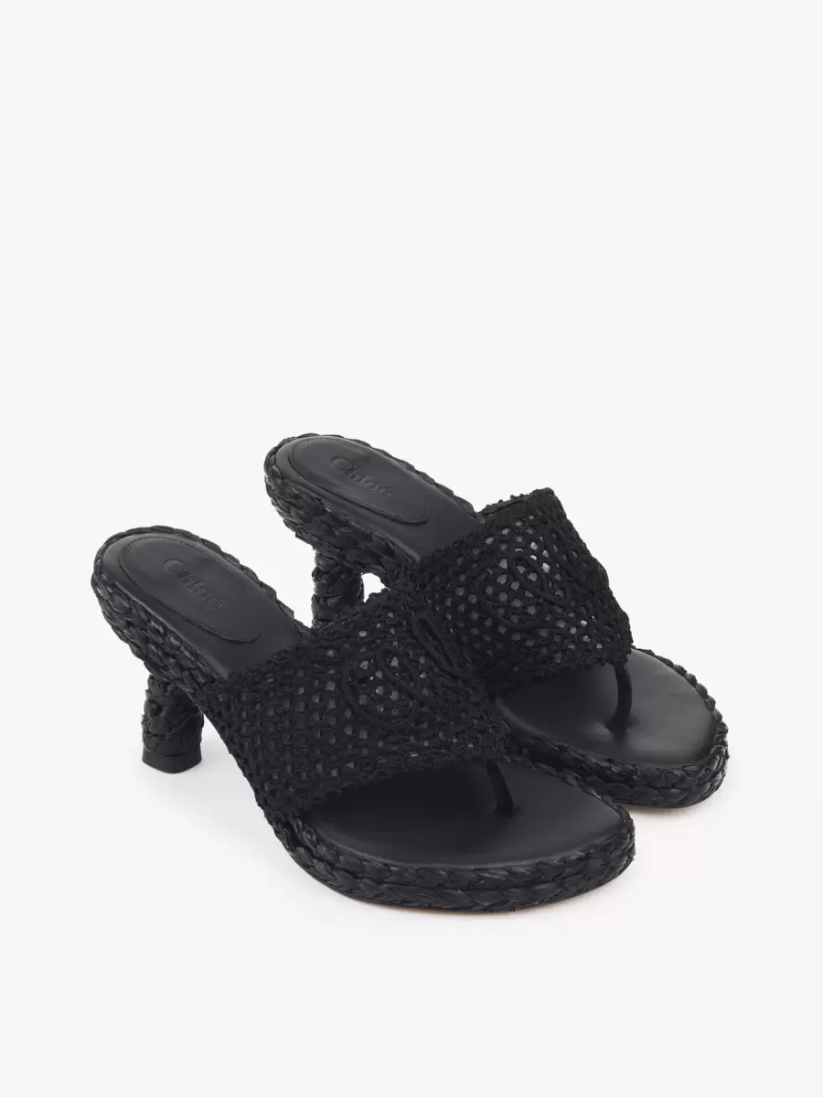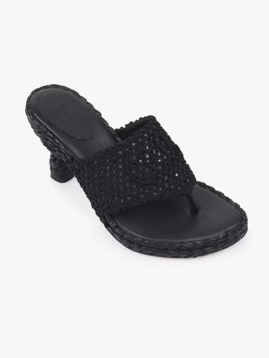 Ispirati alle classiche espadrillas, questi sandali con tacco Isla presentano una tomaia infradito effetto crochet su una struttura in corda con tacco curvo. Ricamo iconico Chloé tono su tono sulla tomaia.