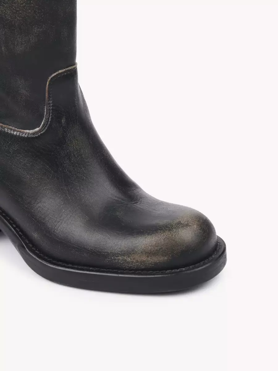 Realizzati in pelle di vitello spazzolata granata, questi stivali Dakota si ispirano ai classici stivali da motociclista.